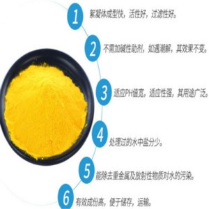 对水中胶体和颗粒物具有高度电中和及桥联作用,并可强力去除微有毒物及重金属离子,性状安稳。查验办法可按世界GB 15892--2003规范查验。因为氢氧根离子的架桥作用和多价阴离子的聚合作用,出产出来的聚合氯化铝是相对分子质量较大、电荷较高的无机高分子水处理药剂。